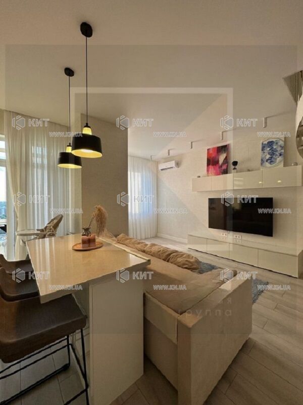 Формат квартиры: кухня-гостиная, спальня, ванная комната, душевая комната, гардероб, балкон.