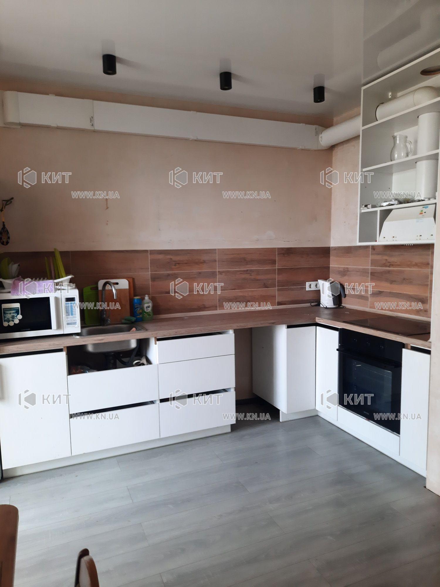 Мебель и техника остается: встроенная кухня, варочная панель, духовка, вытяжка, холодильник, сма