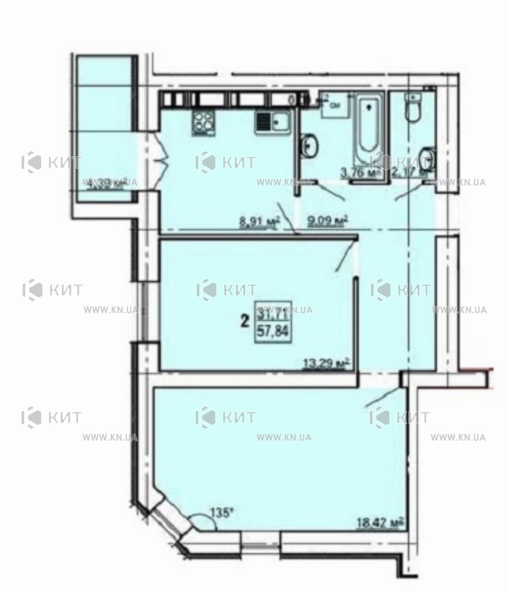 Продается 2-комнатная квартира, Гагарина, Елизаветинская ул. 1А, м. Левада, ЖК Левада. Общая площадь - 61 м²; 16 этаж 16-этажного дома.
