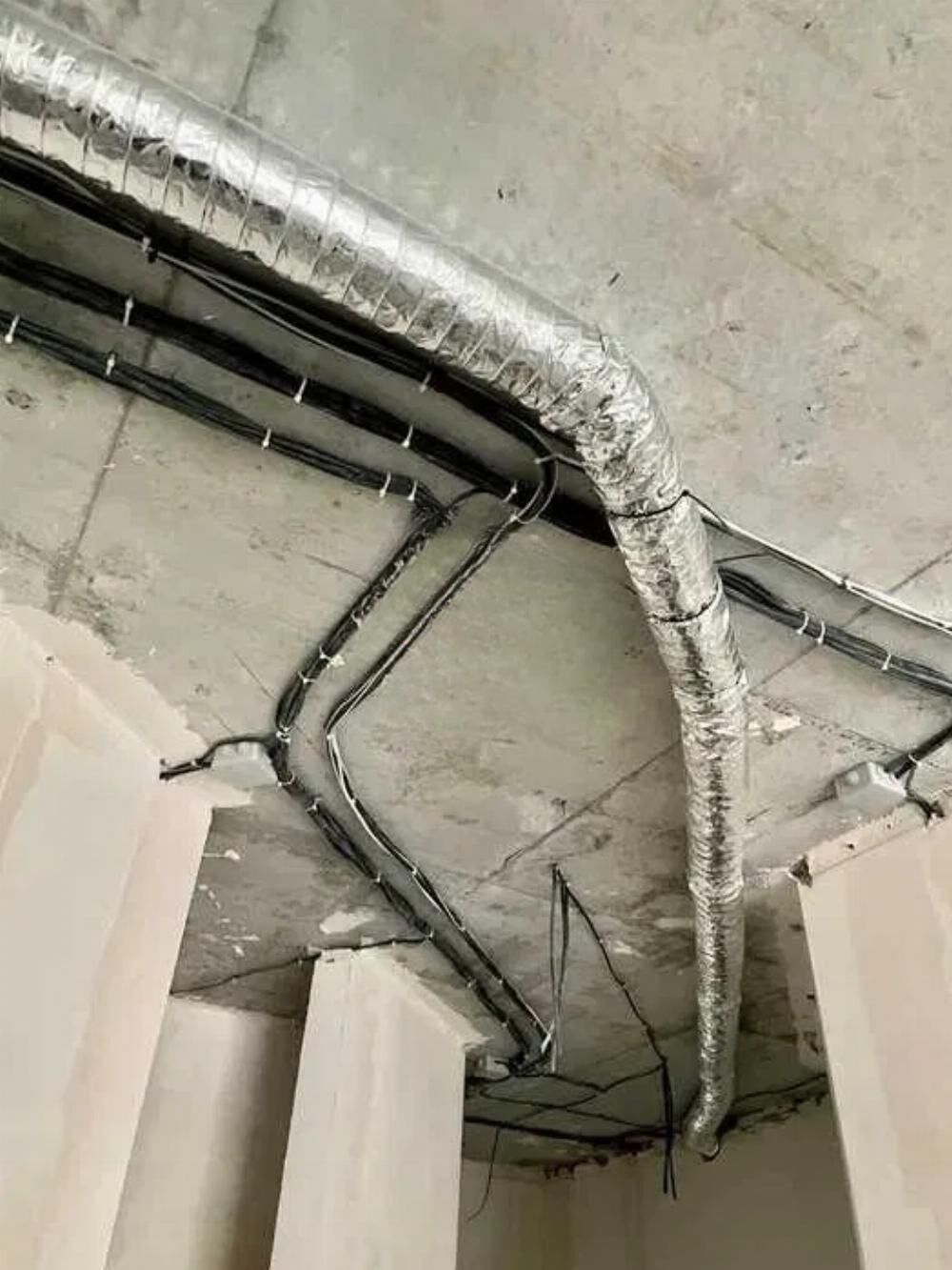 Выполнен полностью электромонтаж проводки, разведено отопление и водоснабжение. Разведена канализация, заложены инсталляции, установлены бойлеры.