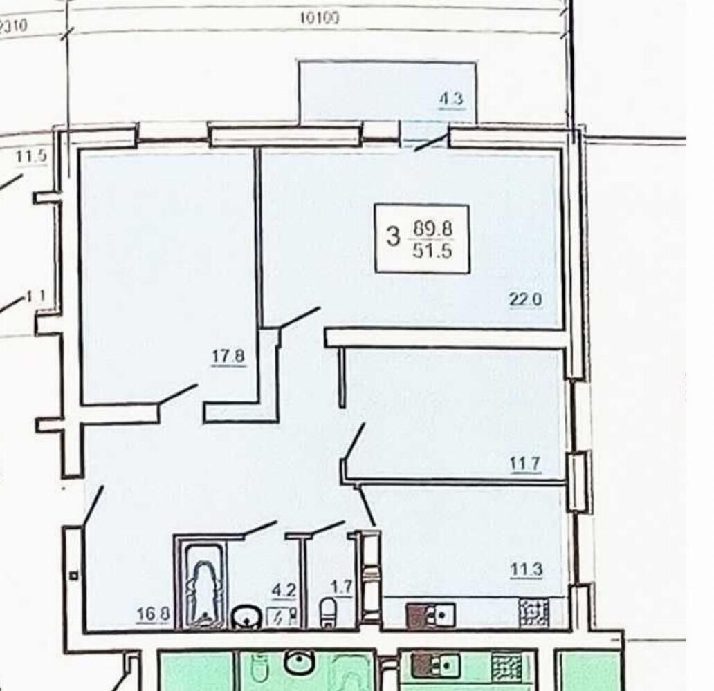 Продается 3-комнатная квартира, Салтовка(Г.Труда,Студ.), Непокорённых (Героев Труда) ул. 1Ж, м. Салтовская, ЖК Оазис. Общая площадь - 89.9 м²; 6 этаж 16-этажного дома.