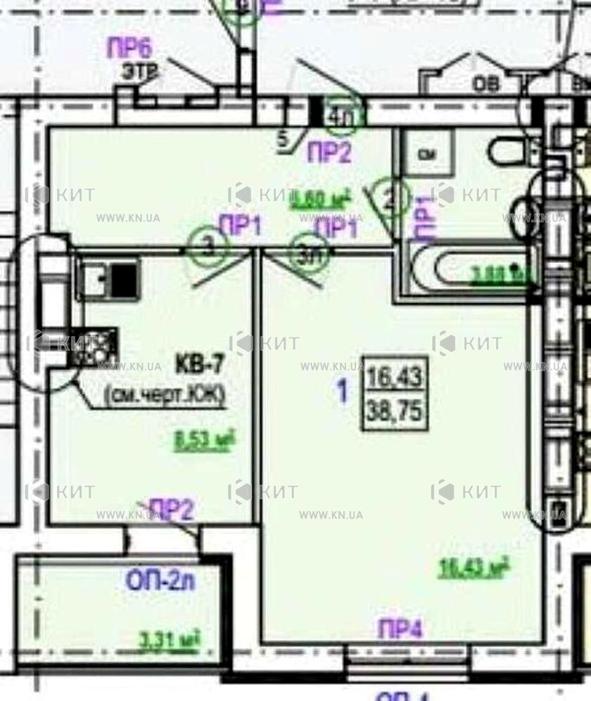 Продается 1-комнатная квартира, Киевская, Гидропарк, Борткевича ул. 11, ЖК Гидропарк. Общая площадь - 38 м²; 7 этаж 9-этажного дома.
