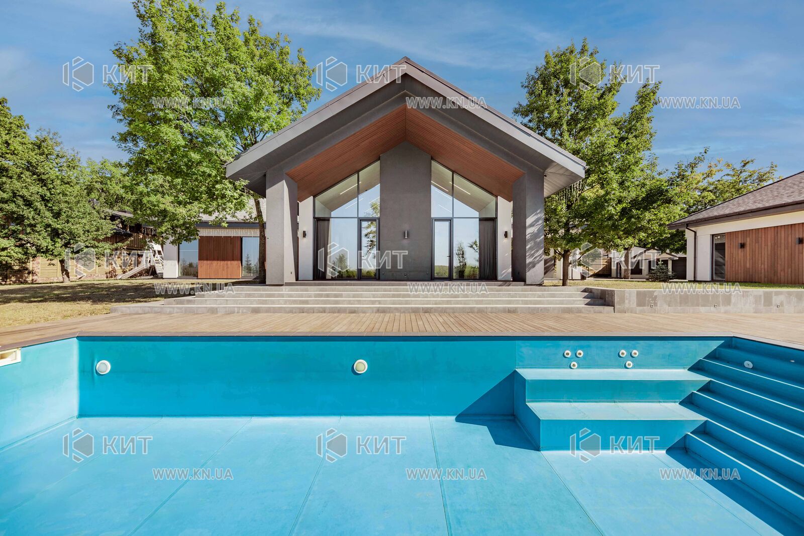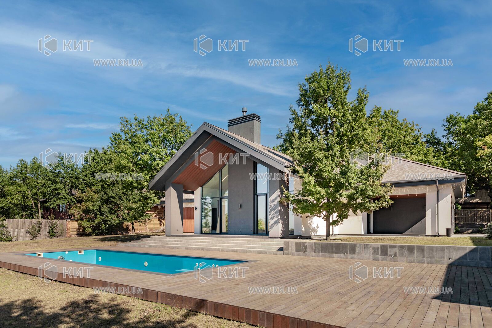 От Собственника ( Без Комиссии). Дом 300 м2 с бассейном. (В закрытом - охраняемом коттеджном поселке). Планировка : кухня студия с камином, четыре спальни, кабинет, три санузла, гардероб, котельная (построчная). Коммуникации: свет 30 кВт + 10 кВт, вода центральная, газ (все подготовленно но не подключен) , канализация (биопроцессор). Участок 30 соток. На участке бассейн, два гаража, беседка с летней кухней, детская площадка.
