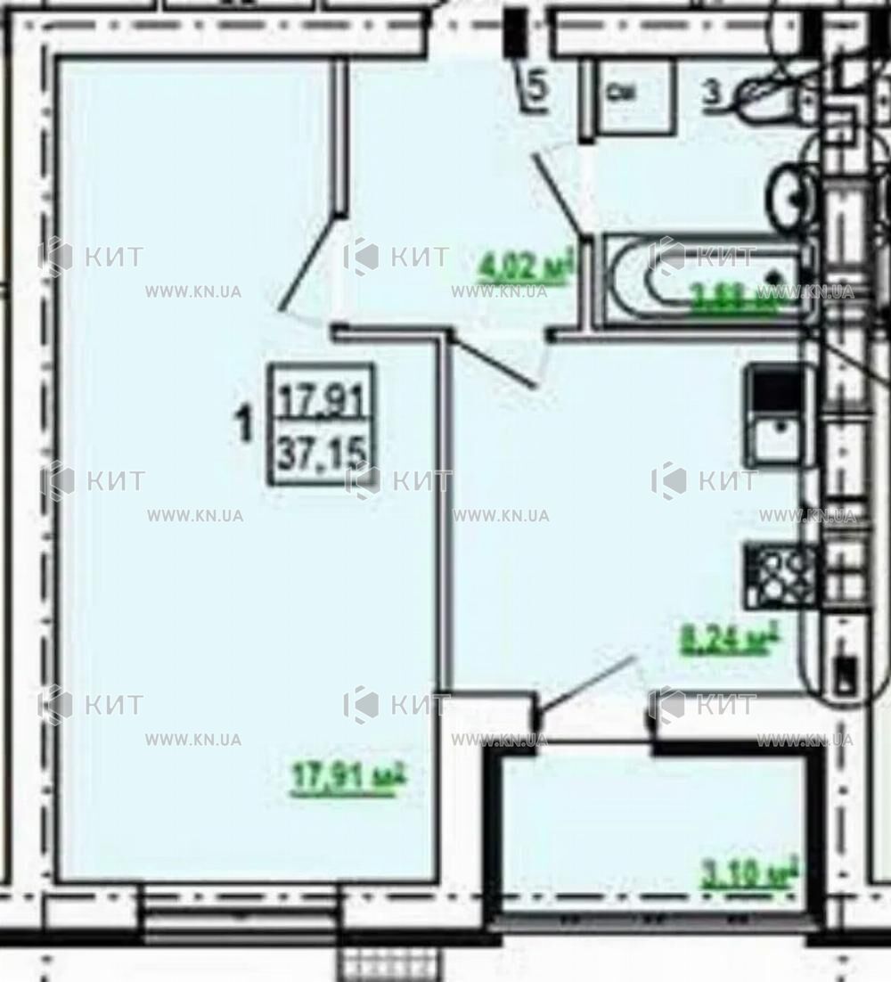 Формат квартири: кухня, спальня, санвузол, ванна кімната, балкон.