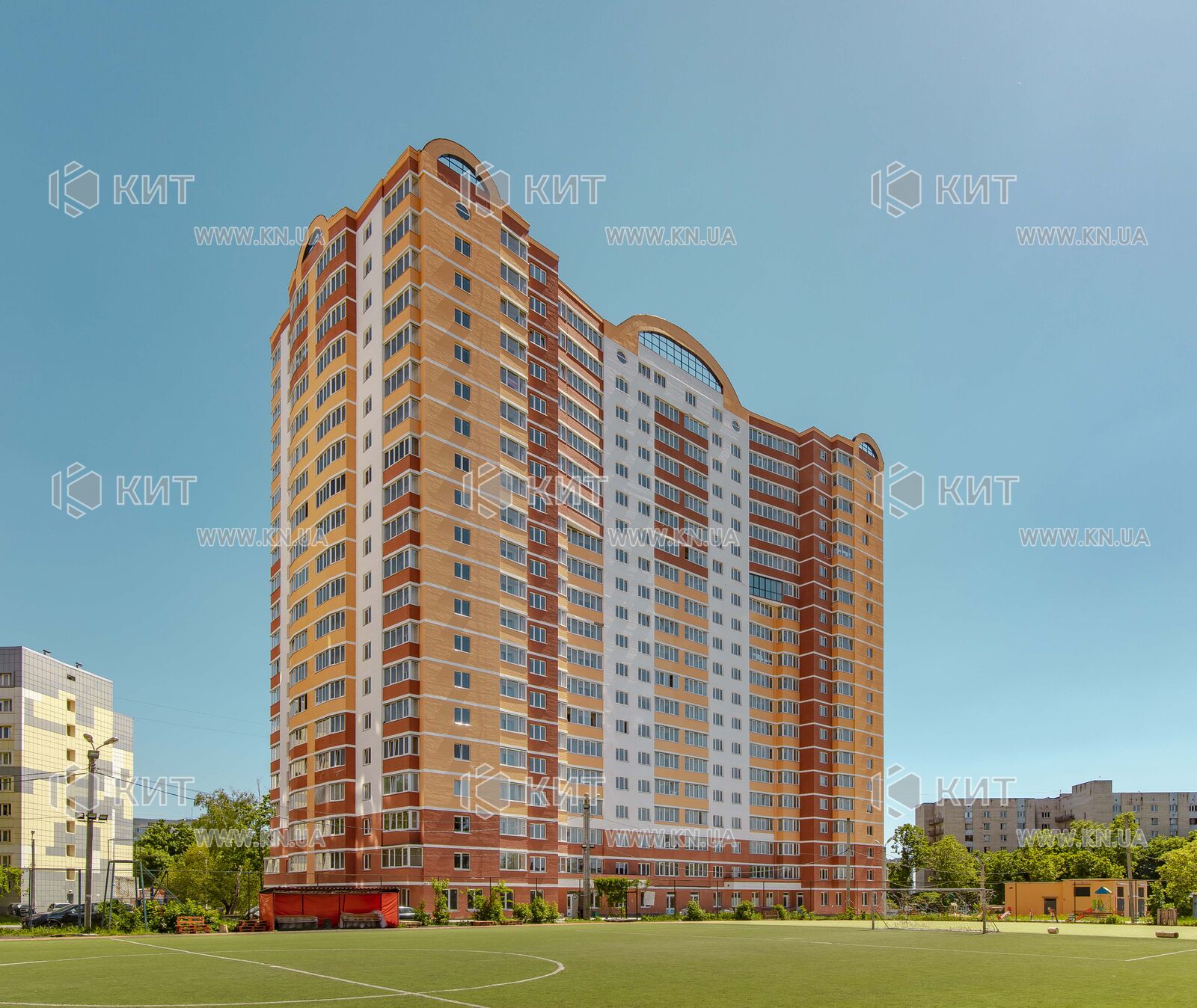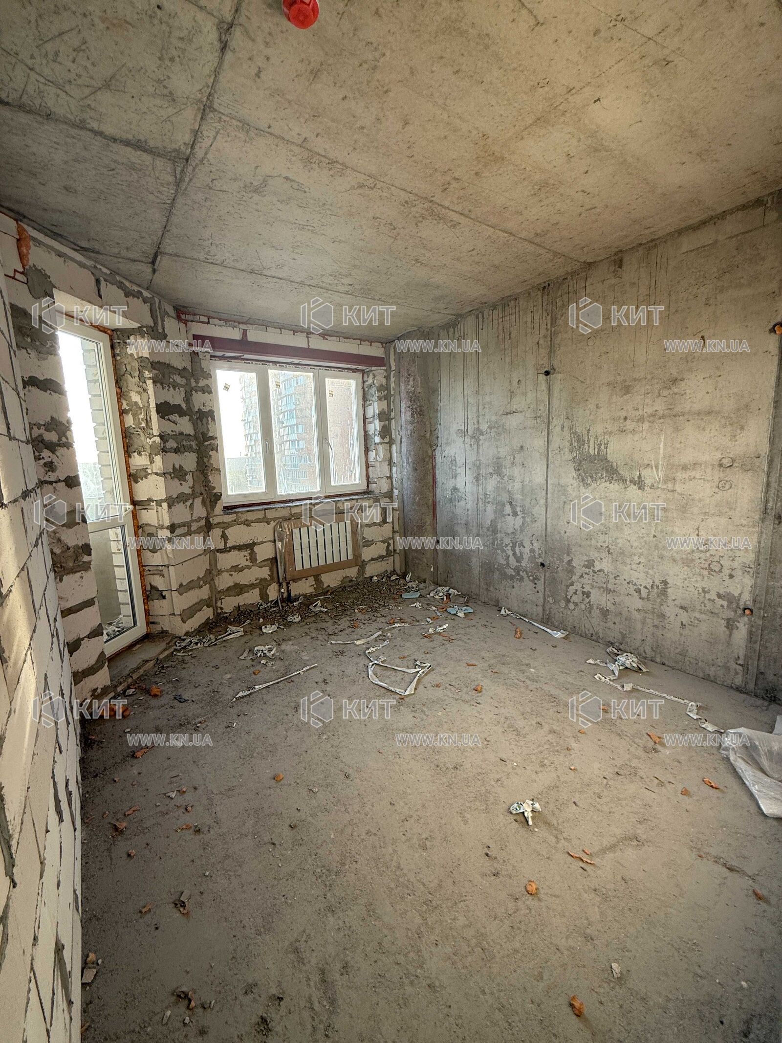 У квартирі: будівельний стан, вікна виходять на футбольне поле.