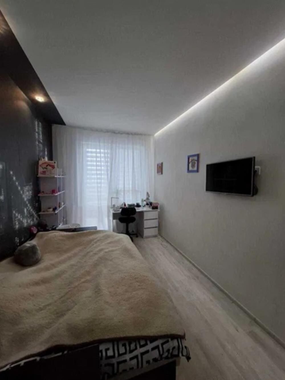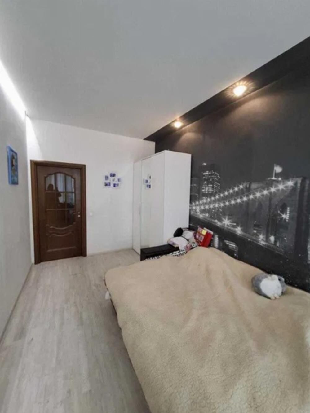 Формат квартири: кухня-вітальня, спальня, дитяча, санвузол, ванна кімната, гардероб, балкон.