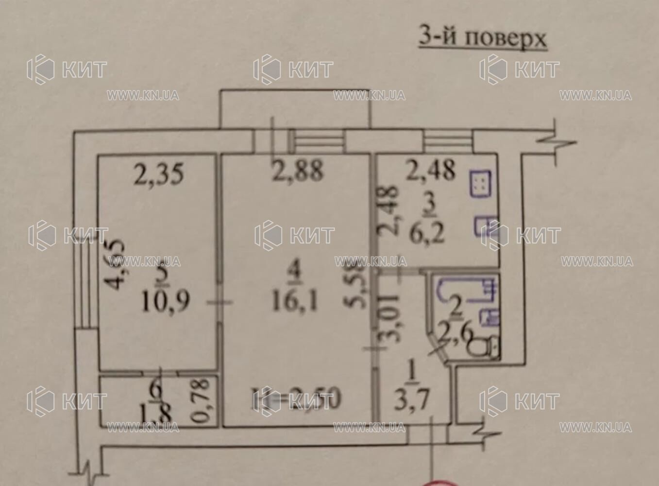 Формат квартири: кухня, вітальня, спальня, ванна кімната, балкон.