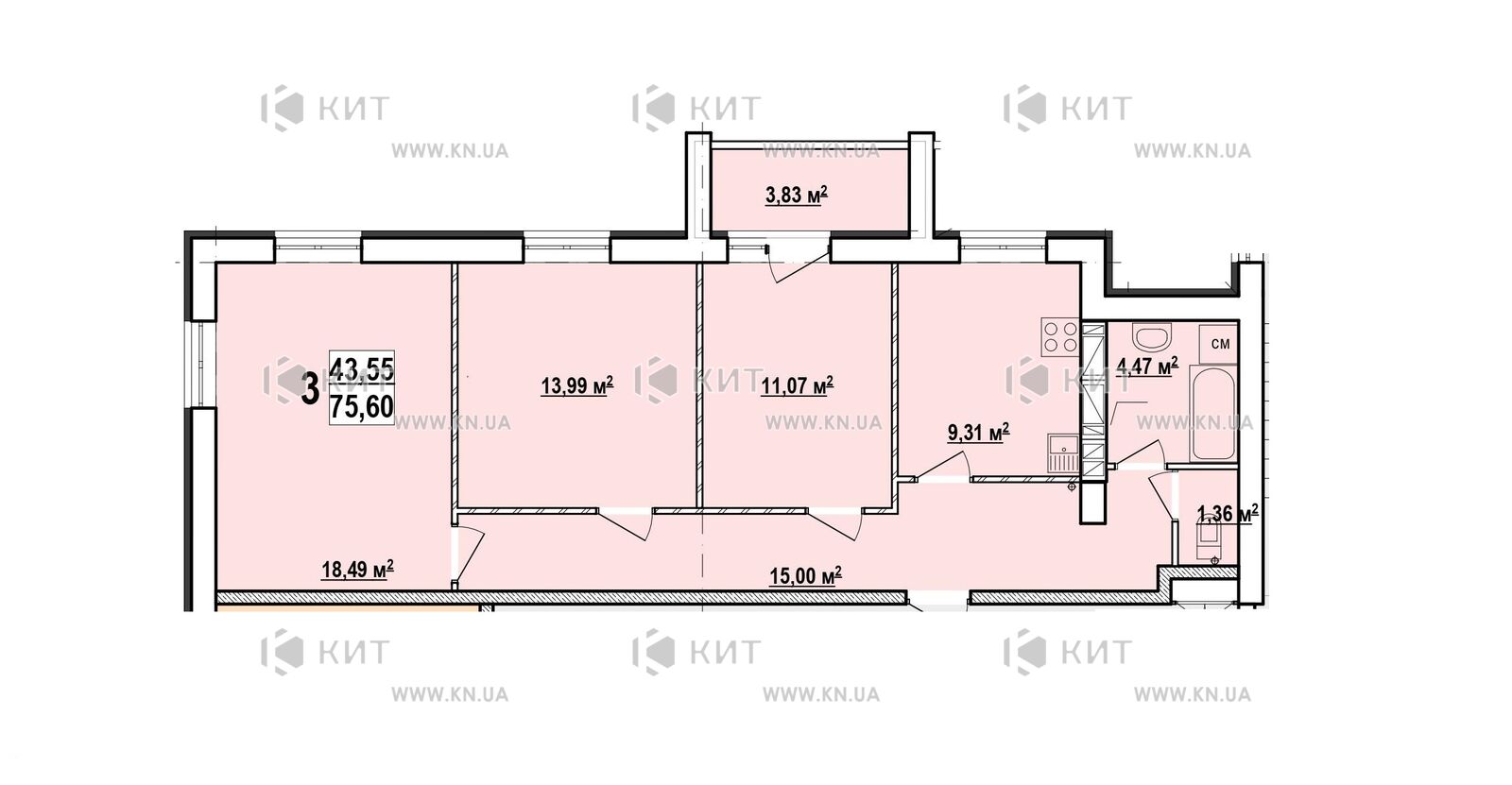 75.59 / 43.55 / 9 м²