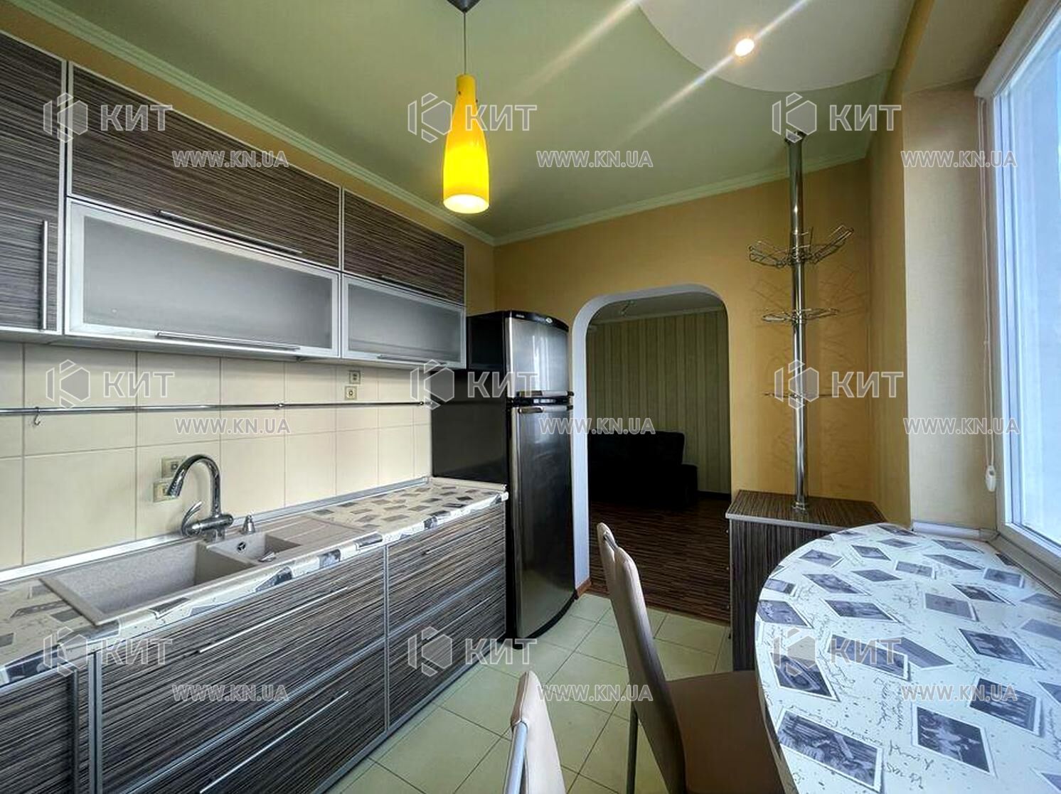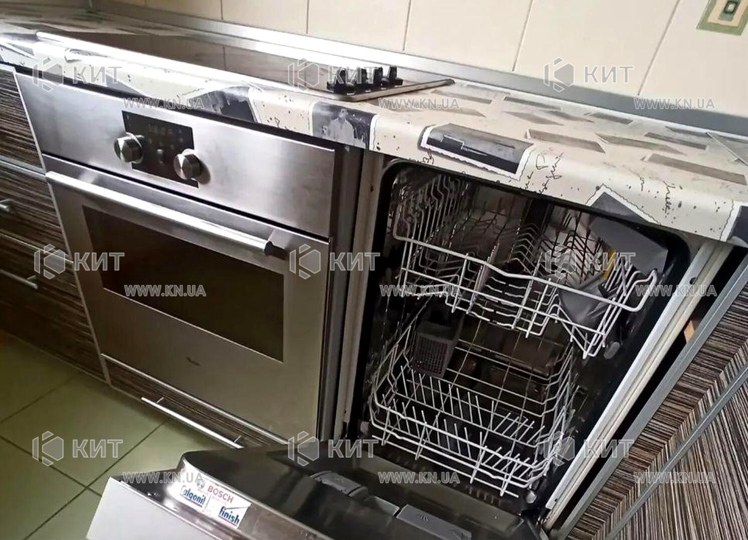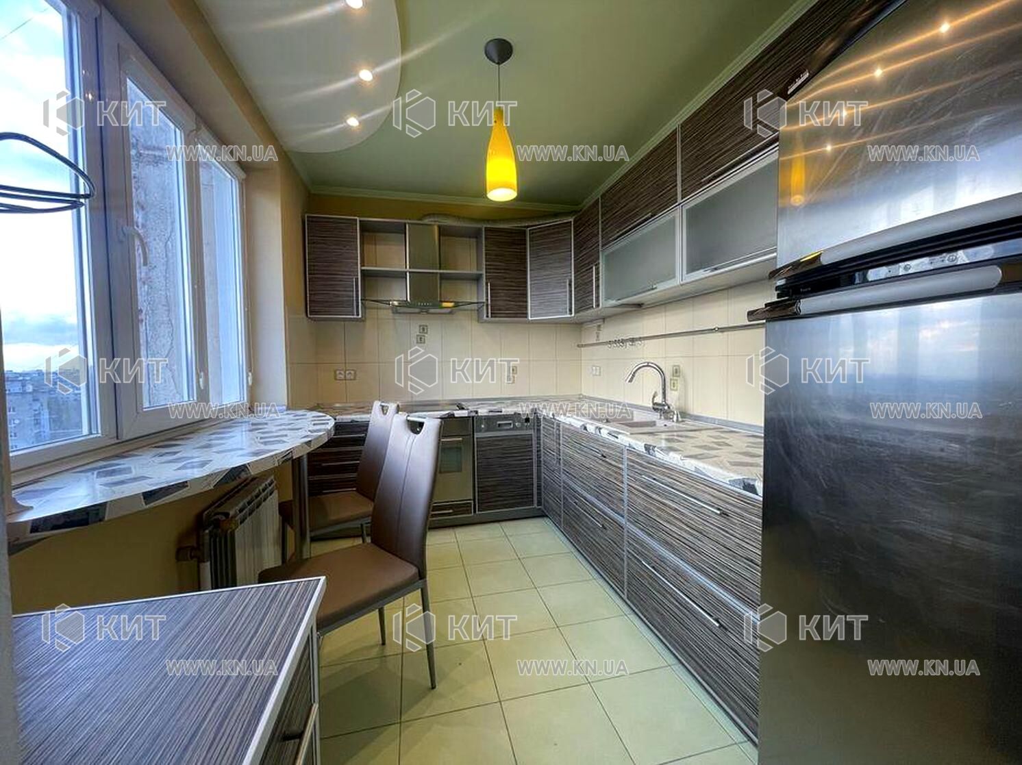 Кухня повністю укомплектована: вбудовані меблі та техніка (посудомийна машина, духова шафа, витяжка, холодильник) залишаються. Є барна стійка.