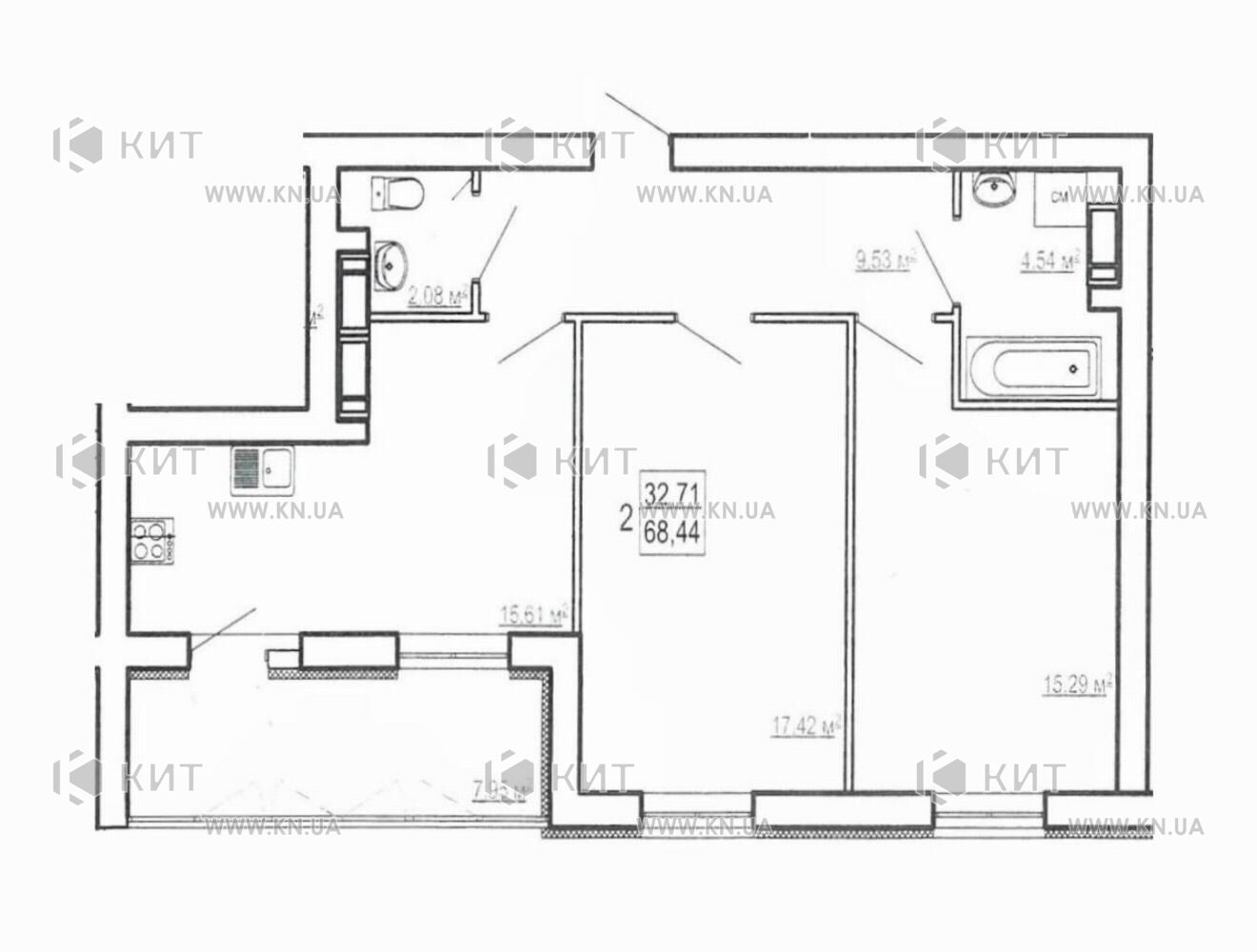 Продається 2-кімнатна квартира, Холодна Гора, Полтавський Шлях вул. 184А, м. Холодна Гора, ЖК Казка. Загальна площа - 68 м²; 9 поверх 9-поверхового будинку.