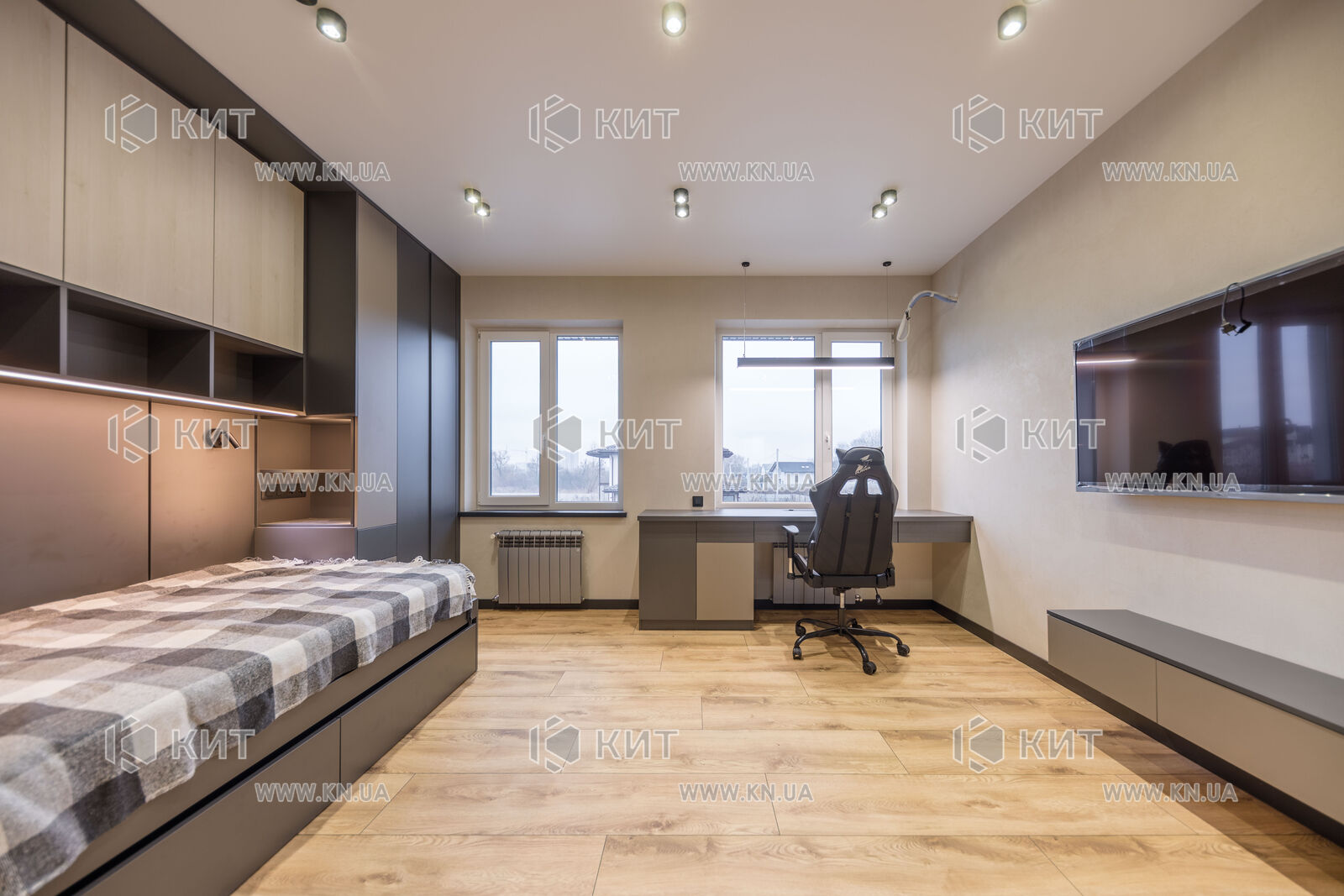 Будинок 180 м2 з новим ремонтом (меблями та технікою). Планування першого поверху: кухня студія, санвузол, котельня, гостьова кімната. Планування другого поверху: три спальні, два санвузли, рядкове. Комунікації: вода (свердловина), каналізація (центральна), світло. Ділянка 6 соток, на ділянці навіс для автомобілів.
